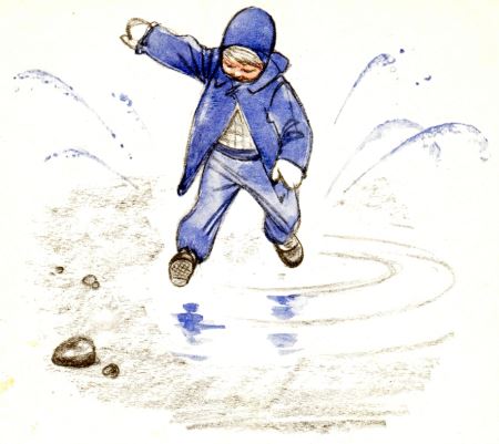 — Котя! — позвала она внука. — Подойди сюда! Котя, застегни верхнюю пуговицу у пальто. Иди играй на песочке! И не бегай по лужам. Я скоро вернусь из магазина.