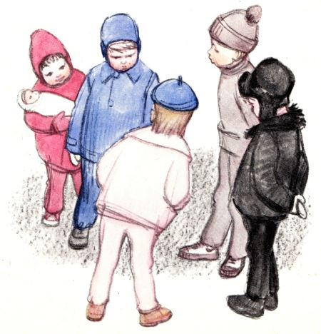 Услышали взрослые Колин крик, стали стыдить его. Они сказали, что пожалуются его маме, скажут ей, какой он драчун, и мама больше никогда не пустит Колю одного гулять во двор.