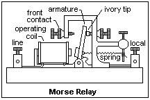 схемы приемопередачи по Морзе, а также позднейших изобретений Морзе: реле и усилителя-повторителя