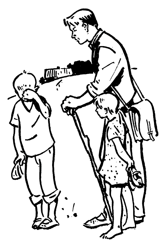 — Идем с нами, Санька, — говорит Светлана. — Не бойся. Нам по дороге, и мы за тебя заступимся.