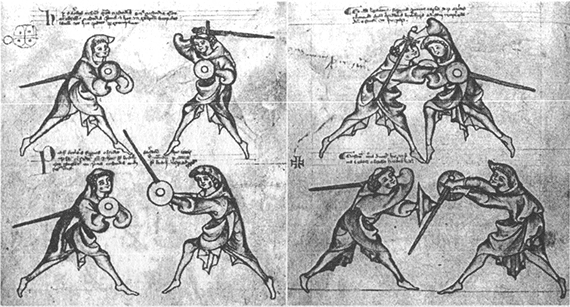 Фрагмент одного из первых учебников фехтования. Время — рубеж XIII–XIV вв., еще до эпохи лат