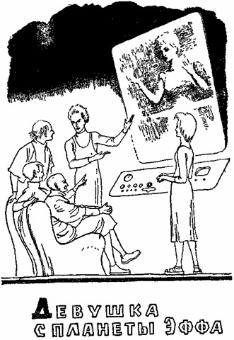 У всех, конечно, один и тот же недоуменный вопрос: кто эта девушка на экране? Как она попала на магнитную ленту космической ракеты? Рэшэд объясняет загадку очень просто: Эффа населена разумными существами, достигшими в своем развитии высокого совершенства. Девушка выступала там по телевидению, а приборы космической ракеты поймали передачу и записали на магнитную ленту изображение и голос.