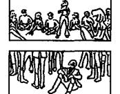 Есть удачный способ привлечь внимание зрителя к актеру, располагающемуся в центре группы. В театре такая техника носит название «оккультного равновесия». Группа сидящих актеров как бы уравновешивает стоящих актеров. Возможен здесь и контрплан (рис. 7.1).