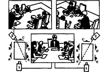 Со второй камеры справа контрплан представлен следующим образом: первый актер справа в плане 1 перемещается влево в положение 2.
