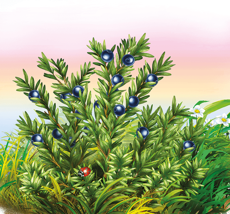 В конце июля на месте цветков созреют ягоды. Не зря по ним назвали кустарничек черникой. Для хозяек темные пятна от этих ягод – беда, не отстираешь. На самом деле ягоды не черные, а скорее темно-синие. Не случайно англичане называют чернику «голубой ягодой». Сочную мякоть черники от микробов защищает сизоватый восковой налет. Но стоит собрать ягоды, как его защита пропадает. Черника долго не лежит и быстро закисает. Скорей ее в дело! Протертая с сахаром в холодильнике долго будет стоять. Если сахара нет, можно закатать в банки с горячим черничным соком. Вкусно и для здоровья полезно.