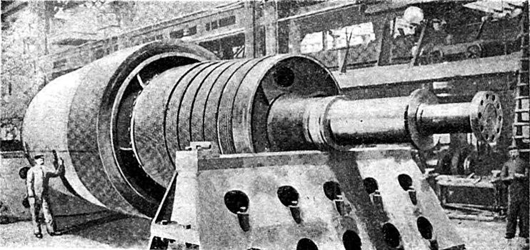 Вначале, как на «Турбинии», так и на военных и коммерческих судах, осуществлялось непосредственное соединение вала турбины с гребным винтом. Число оборотов таких турбин соответствовало наивыгоднейшему числу оборотов гребного винта. Но, как это было установлено дальнейшим опытом, наивыгоднейшее число оборотов гребного винта, даже при самом быстром ходе судна, все-таки далеко уступало числу оборотов обычных стационарных турбин. Для понижения скорости судовой турбины стали прибегать к увеличению турбинных колес, что в свою очередь, конечно, влекло за собой увеличение всех размеров турбины вообще. Так, турбины «Мавритании», делавшие около 200 оборотов в минуту, представляли собой тяжелые машины огромных размеров. Вес ротора первой турбины равнялся 72 тоннам, а второй — 126 тоннам. Такая турбинная установка представляла собой сложное, громоздкое и тяжелое сооружение, тем более, что кроме главных турбин, обслуживавших три гребных винта, нужно было иметь еще турбины для небольшой скорости судна, так как при маневрировании судна необходим тихий ход, которого давать основные турбины не могли.