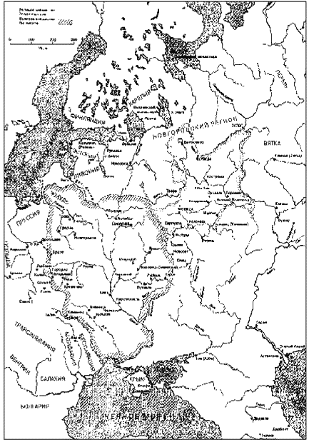 В первой половине XV века Золотая Орда распалась на отдельные ханства. На востоке образовались ханства: Казахское, Узбекское, Сибирское, Ногайская Орда. В Среднем Поволжье образовалось Казанское ханство. В низовьях Волги по правому берегу, а также по Манычу, Куме и Тереку образовалось Астраханское ханство. Большая (Великая) Орда располагалась между Волгой и Днестром и частично на Северном Кавказе. Крымское ханство образовалось в Крыму, в Причерноморье и Приазовье.