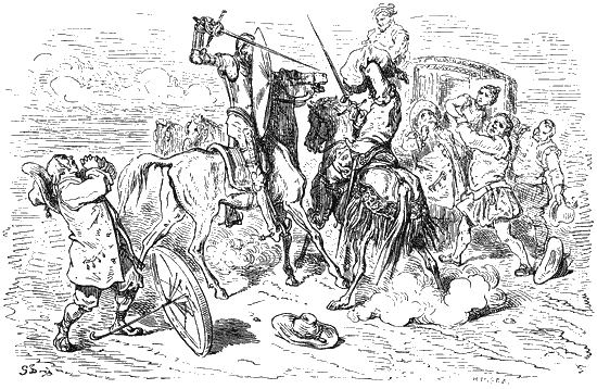 Между тем Дон Кихот, как уже было сказано, вступил в разговор с сидевшей в карете дамой.