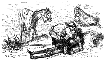 – Вот беда! – узнав эту печальную новость, воскликнул Дон Кихот. – Лучше бы мне отрубили руку, только не ту, в которой я держу меч. Надобно тебе знать, Санчо, что рот без коренных зубов – это все равно что мельница без жернова, а потому каждый зуб следует беречь пуще алмаза. Впрочем, кто дал суровый обет рыцарства, те должны все невзгоды терпеть безропотно. Итак, садись на осла, друг мой, и указывай путь, а я последую за тобой, куда тебе будет угодно.