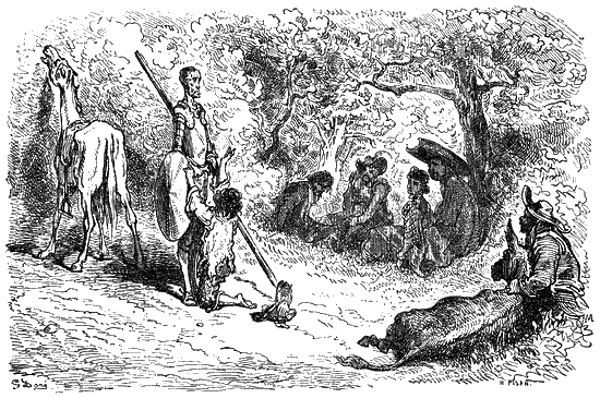 о любопытной беседе, которую вели между собою Дон Кихот и его оруженосец Санчо Панса, равно как и о других происшествиях