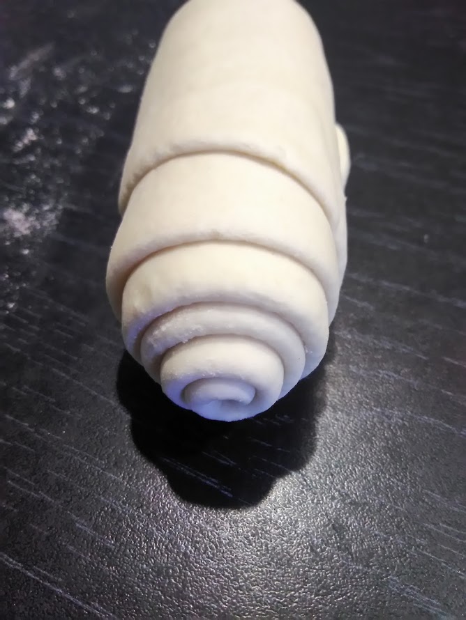 Раскатываем в тонкий пласт, сворачиваем в рулет. Повторяем до полного впитывания воды в мучные вкрапления. Пласт гладкий с однородной текстурой.