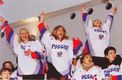 А жены российских хоккеистов дружно болели за всю нашу сборную