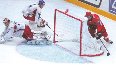 А еще год спустя, на чемпионате мира в Квебеке, Россия завоевала второе кряду золото на мировом первенстве в Швейцарии. Победная шайба, вновь в ворота канадцев, оказалась на счету Александра Радулова (№ 52)