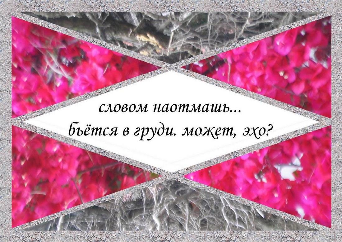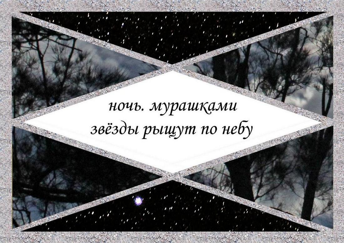 Читатель нашей книги поставлен в более лёгкое положение – он видит хокку, хотя, при желании, может и поиграть в эту игру: скрывая каким-нибудь образом текст в центре страницы, попытаться написать двустишие – и затем соотнести его с оригинальным хокку-минус, созданным Борисом Гринбергом.