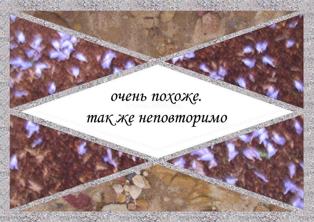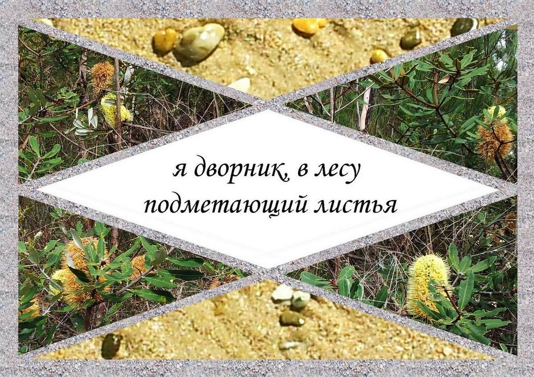 Для изображений были использованы фотографии, которые я делала в австралийских садах, лесах, горах и на море. Изображение, очевидно, не соответствует написанному буквально, но преломившись в моём понимании текста, раскрывает его скрытыми гранями – как я их увидела.