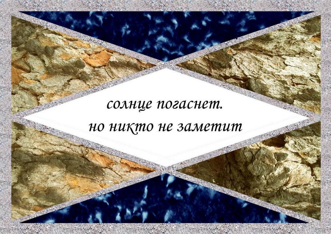 Когда я прочитала в живом журнале Бориса двустишия, которые он назвал «хокку-минус», мне понравилась их лаконичность, сгустившая лаконичность японских трёхстиший до невозможной плотности и вместе с тем ясности. Мне захотелось добавить в них цвет, в прямом смысле – раскрасить, как на японских картинах изображение соседствует с калиграммой. Тем самым плотность стихотворения открывалась бы читателю, сегодня пролистывающему книги на бегу и редко останавливающегося полюбоваться падением лепестков цветущей вишни. Так стихотворения прорастали бы новыми смыслами.