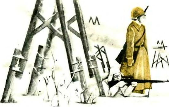 «Как это я промахнулся?»— подосадовал фашист. Прицелился получше — и снова промазал: солдат не упал.