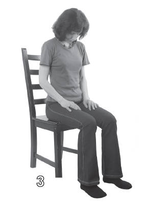 1. Исходное положение: сядьте на стул или на табурет с плоским твердым сиденьем, поставьте ноги примерно на ширине плеч, плотно упритесь подошвами в пол. Выпрямите спину, свободно опустите плечи.