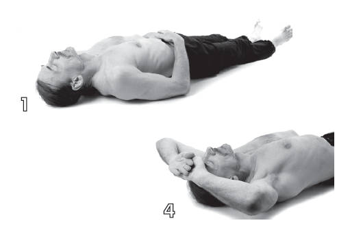 1. Исходное положение: лягте на пол, ладони положите на живот.