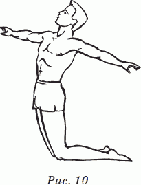 12. Прежде чем окончательно подняться с постели, встаньте на колени, руки в стороны и потянитесь. Прогнув спину, поверните голову направо, налево, при этом растягивая себя руками в разные стороны – поперечно, продольно, по диагонали (рис. 10).