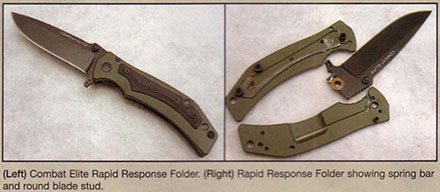 Складной нож Combat Elite Rapid Response Folder использует вспомогательный механизм раскрывания, запатентованный Уильямом Тэйлором (William Taylor). При складывании лезвия из полностью открытого положения при угле около 15° до средней точки, штырь на стороне осевого конца лезвия входит в контакт с перекладиной пластинчатой пружины. Эта пружинная перекладина расположена в уступе рукояти, на расстоянии от замка frame lock, уступ — прямоугольного сечения. Перекладина расположена параллельно лезвию и на конце внешней стороны имеет кулачковый скат, который вступает в контакт со штырем лезвия.