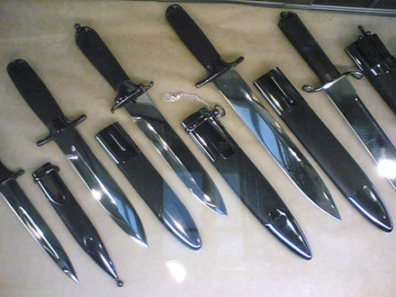 Галерея «Русские Палаты», известная изготовлением декоративно-прикладного холодного оружия с дорогой отделкой из драгоценных камней, клыков моржа, золота и серебра, выпустила новую серию ножей полированной высокоуглеродной стали. Рукоятки из мадагаскарского чёрного дерева и сам клинок, кажущийся абсолютно чёрным, смотрятся необычно и очень красиво.