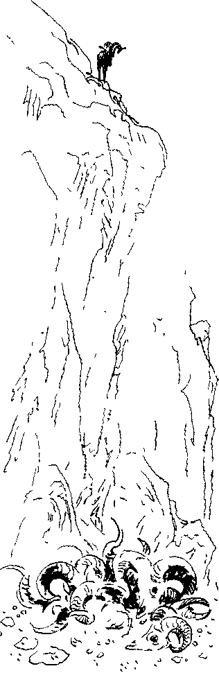 И вдруг вот он! На тропе показался старый архар с огромными рогами. Вряд ли представится ещё раз такой случай. Я поднял карабин над камнем, поймал архара в прицел, но, волнуясь, не учёл близкого расстояния и взял выше, чем надо. Пуля громко шлёпнула в скалу над самой его головой. Звук выстрела покатился по горам, угасая, а красавец архар бросился вперёд по тропе, соря вниз камешками. Вот и поворот скалы, сейчас зверь скроется за ним. Я лихорадочно ловлю его вторично на мушку, но не успел нажать на спуск, как тропа на скале опустела – архар исчез, не добежав до поворота. Глухой удар тяжёлого тела о камни всё объяснил: архар сорвался с тропы... Когда мы подбежали, он был уже мёртв.