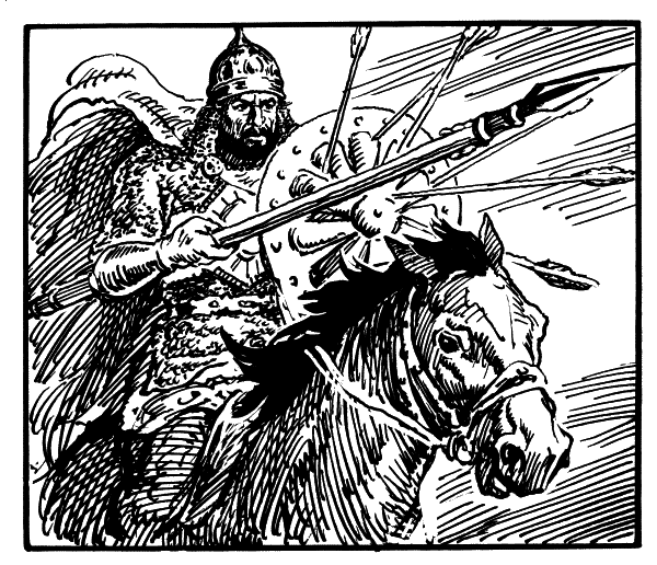 Везде летает он орлом — Там гонит, здесь разит, карает, Удар ударом умножает…