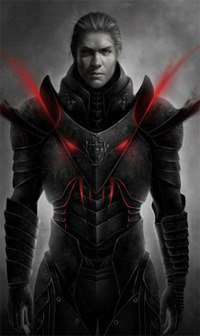Шар запульсировал алым, и мы увидели человека, который стоял на одном колене на тротуаре. У него была черная броня, святящаяся красноватым. Его длинные, золотисто-пепельные волосы струились по плечам, спадая на нагрудник. Он держал длинное копье со знаменем цвета крови Дома Крэр.