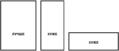 В целом можно сказать, что фигура, которая немного больше в высоту, чем в ширину (широкий вертикальный прямоугольник) более эффективна, чем высокая и узкая (узкий вертикальный прямоугольник) или большая в ширину, чем в высоту (горизонтальный прямоугольник).