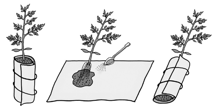 При появлении 4–5 настоящих листов разверните пленки, добавьте ложку грунта и заверните (рис. 5).