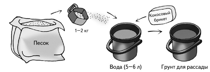 Заполнить горшочки подготовленной почвосмесью (рис. 24), такой, как для томатов и перцев, увлажнить, уплотнить. Сначала надо замочить семена в растворе любого биостимулятора («Циркон», «Эпин-экстра»), и как только они набухнут и проклюнутся, аккуратно положить на поверхность почвы по одному семечку в каждый горшочек и присыпать сверху сухой почвой слоем 1,5–2 см, еще раз уплотнить. Накрыть пленкой или стеклом и поставить в теплое место.