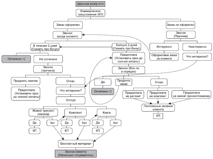 Если клиенту действительно интересна данная тема, он согласится купить, и вы снова отправите ему коммерческое предложение. Далее возвращайтесь в начало схемы – к пункту «Коммерческое предложение».