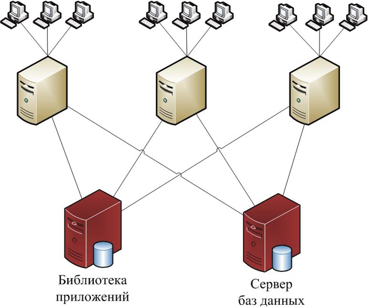 Рис. 1.10. Архитектура тяжелой ERP– системы с выделенной распределенной библиотекой приложений