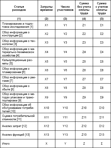 3-й этап. Расчет фактических затрат. Оценка потребительной стоимости