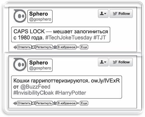 Мне ужасно нравятся их твиты. Это идеальный пример бренда, который понимает свою аудиторию и умеет рассказывать истории. Они точно знают, кто захочет купить мяч, управляемый с помощью айфона. Sphero использует видео со ссылками BuzzFeed. То есть компания говорит со своими поклонниками на родном для социальной сети языке. Одним словом, Sphero понимает все – аудиторию, платформу, ее язык и свою историю. Этот пост понравится даже тем, кто не относится к целевой группе пользователей.