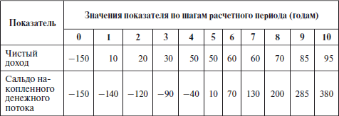 I0 – величина первоначальных инвестиций.Пример. Рассчитать срок окупаемости инвестиций для проекта с денежным потоком (табл. 11.1):