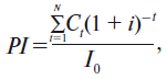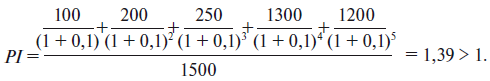 Индекс рентабельности инвестиций (прибыльности, доходности) – PI – рассчитывается как отношение чистой текущей стоимости денежного притока к чистой текущей стоимости денежного оттока (включая первоначальные инвестиции):
