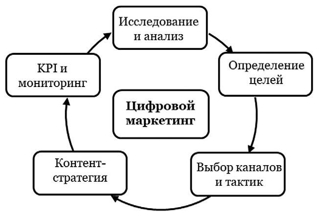 Цифровой маркетинг – это циклический процесс, управление которым требуют тщательного планирования и поступательного прохождения ряда ступеней.