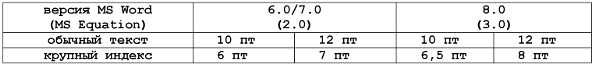 Для Corel DRAW 7.0 это верно до тех пор, пока вы не повернёте текст на 90 градусов (например, в надписи по оси графика). Результат будет плачевным также при печати на принтерах с неравномерным разрешением, скажем на 9-ти игольниках (120x144). Поэтому лучше не использовать форматирование текста в виде индексов, предлагаемое Corel DRAW, а менять размер символов индексов в тексте согласно табличке для MS Equation и поднимать или опускать их соответственно на 58 % вверх и 33 % вниз.