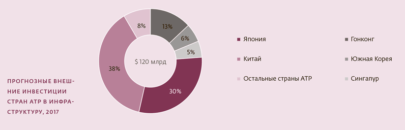10. Среди наиболее перспективных зарубежных инвесторов в российскую инфраструктуру – страны Азиатско-Тихоокеанского региона. Они продолжают наращивать внешние инвестиции, но Россия в распределении этих средств почти не участвует. Количество инфраструктурных проектов в стране с участием азиатских инвесторов хоть и растет, но все еще невелико. Последнее – прямое следствие недостатка проработанных проектов и активности отечественных финансовых мейджоров. Их возможностей пока хватает, чтобы профинансировать то немногое, что доходит до реализации в России.