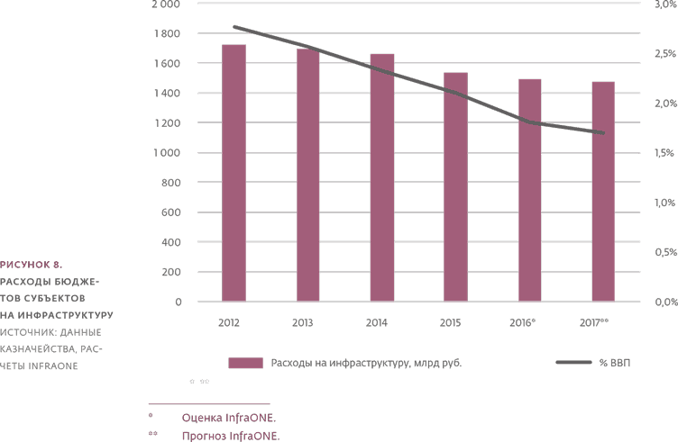 Мы считаем, что российские регионы и федеральный бюджет вполне способны справиться с нынешними «забалансовыми» обязательствами и даже их нарастить. C учетом недостатка на рынке проектов для финансирования и среднем приросте «забаланса» примерно на 30 % в год (оценка InfraONE), момент, когда долг перестанет быть незначительным, по нашему мнению, наступит примерно через 8–10 лет.