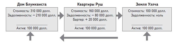 Давайте посмотрим, какие преимущества получила каждая из сторон и насколько они превосходили активы каждого объекта недвижимости в размере 100 тысяч долларов.