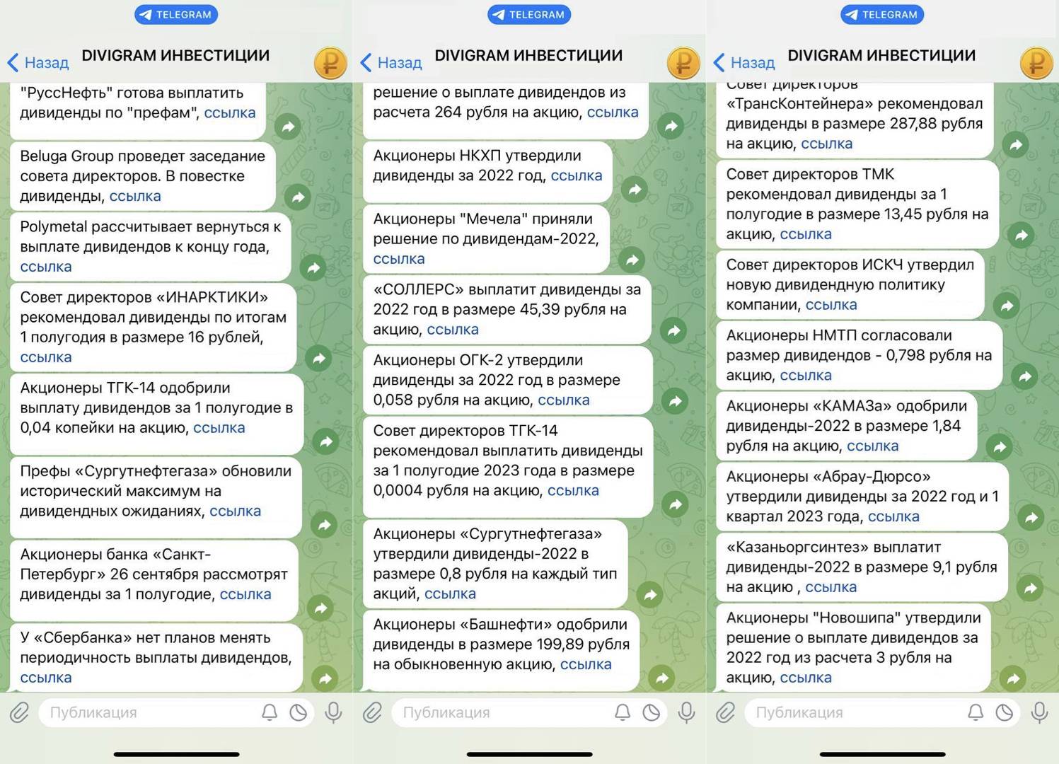 Хотелось бы только уточнить, что как показывает практика больше всего в итоге можно зарабатывать на дивидендах, покупая акции на выходе сущфактов, после которых цена как правило начинает расти вплоть до даты отсечки. А чтобы купить вовремя и не пропустить весь рост, необходимо быть в курсе новостей по дивидендам, которые регулярно публикуются на канале в Telegram 3 , подпишитесь.