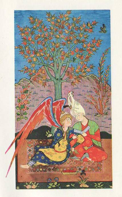 В благоухании, в цветах пришла желанная весна,Сто тысяч радостей живых вселенной принесла она.В такое время старику не трудно юношею стать,—И снова молод старый мир, куда девалась седина!Построил войско небосвод, где вождь — весенний ветерок,Где тучи — всадникам равны, и мнится: началась война.Здесь молний греческий огонь, здесь воин — барабанщик-гром.Скажи, какая рать была, как это полчище, сильна?Взгляни, как туча слезы льет. Так плачет в горе человек.Гром на влюбленного похож, чья скорбная душа больна.Порою солнце из-за туч покажет нам свое лицо,Иль то над крепостной стеной нам голова бойца видна?Земля на долгий, долгий срок была повергнута в печаль,Лекарство ей принес жасмин: она теперь исцелена.Все лился, лился, лился дождь, как мускус он благоухал,А по ночам на тростнике лежала снега пелена.Освобожденный от снегов, окрепший мир опять расцвел,И снова в высохших ручьях шумит вода, всегда вольна.Как ослепительный клинок, сверкнула молния меж туч,И прокатился первый гром, и громом степь потрясена.Тюльпаны, весело цветя, смеются в травах луговых,Они похожи на невест, чьи пальцы выкрасила хна.На ветке ивы соловей поет о счастье, о любви,На тополе поет скворец от ранней зорьки дотемна.Воркует голубь древний сказ на кипарисе молодом,О розе песня соловья так упоительно звучна.Живите весело теперь и пейте славное вино,Пришла любовников пора, им радость встречи суждена.Скворец на пашне, а в саду влюбленный стонет соловей,Под звуки лютни пей вино, — налей же, кравчий, нам вина!Седой мудрец приятней нам юнца-вельможи, что жесток,Хотя на вид и хороша поры весенней новизна.Твой взлет с паденьем сопряжен, в твоем паденье виден взлет,Смотри, смутился род людской, пришла в смятение страна.Среди красивых, молодых блаженно дни ты проводил,Обрел желанное в весне — на радость нам она дана.