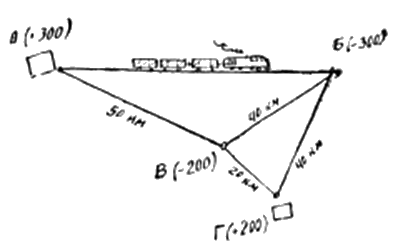 Теперь попробуйте решить такую задачу. На схеме показан участок железнодорожной сети и расстояния в километрах между станциями. На станциях А и Г находится соответственно по 300 и 200 тонн груза. На станцию Б надо доставить 300 и В — 200 тонн груза. Необходимо определить, как везти груз (то есть как прикрепить пункты производства к пунктам потребления), чтобы общий пробег груза был минимальным. На первый взгляд наиболее правильно было бы везти груз из А в Б, а на станцию В доставлять груз из Г. Пробег груза при таком прикреплении составит: 300 т x 80 км + 200 т x 20 км=28 000 тонна-километров. Попробуем теперь прикрепить В к А, а Б к пунктам Г и А. В этом случае перевозочная работа будет равна 200 т х30 км + 100 т х 80 км + 200 т x 40 км = 26 000 тонна-километров. Таким образом, второй план перевозки уменьшает пробег груза более чем на 7 процентов. Он, конечно, лучше, чем первый, не так ли?