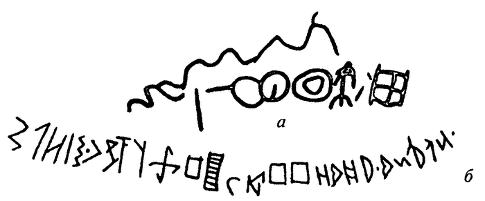 Перед нами, несомненно, надпись, для которой использованы знаки, давно бытовавшие на Енисее, но только теперь поставленные в строку. Об отношении этого примитивного письма к руническому алфавиту можно заключать из того, что далеко не все рунические знаки восходят к арамейской системе.