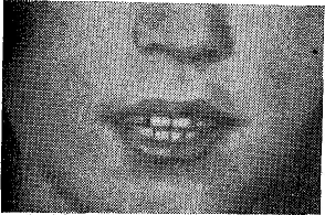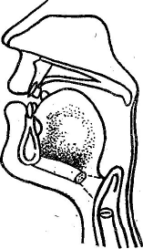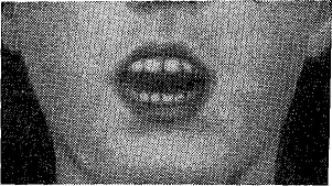 Звук Ы. Расстояние между зубами несколько меньшее, чем при У; зубы немного обнажены, кончик языка касается нижних передних зубов, средняя его часть приближается к нёбу, нёбная занавеска поднята; голосовые связки вибрируют.