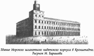 Морской кадетский корпус довольно долго дислоцировался в Кронштадте, его не торопились возвращать в Петербург, ибо, по мнению императрицы и многих руководителей военно-морских сил России, остров Котлин – наиболее подходящее место для морского учебного заведения. Кронштадт тогда являлся главной базой Балтийского флота: сюда приходили из походов военные корабли, отсюда отправлялись экипажи морских судов в дальние плавания. Здесь же размещалась ремонтная база флота, а также его основные складские сооружения. Однако рескриптом императора Павла I корпус в 1796 году вновь обосновался на старом месте в Петербурге.