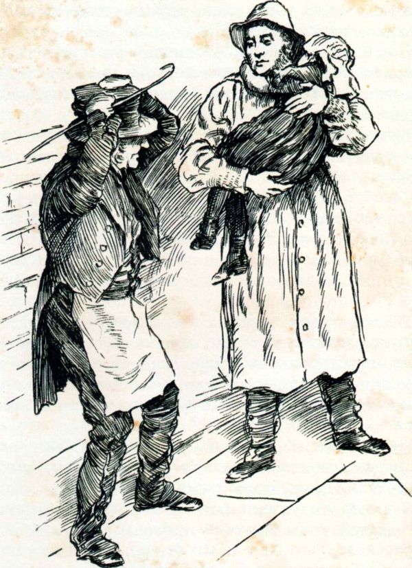 Старый посыльный, к слову, вовсе не думал ничего плохого о незнакомце и его маленькой спутнице. Глаза мужчины были такими добрыми, а девочка так нежно льнула к нему, что Тоби мог вообразить только, что с ними произошло какое-то несчастье. Незнакомец же протянул девочке свою левую руку, а правую так уверенно подставил Тоби в качестве подпорки, что старику не оставалось ничего, кроме как опереться на неё, выразив таким образом согласие на эту неожиданную прогулку втроём в сторону его дома.